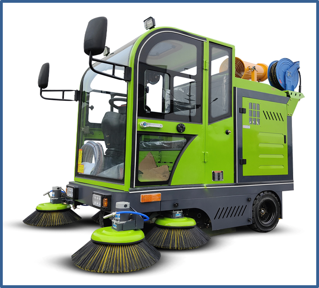 • Hiệu suất làm việc– Chổi biên mạnh mẽ gom bụi quét dọn, chổi lăn thu gom vào thùng chứa, chổi biên được trang bị đầu phun nước giảm bụi, ngăn chặn bụi bay khi quét.